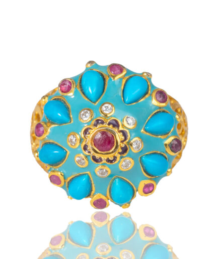 Sterling silver jewelry with 22k gold plated, natural stone and enamel.