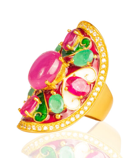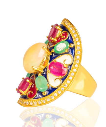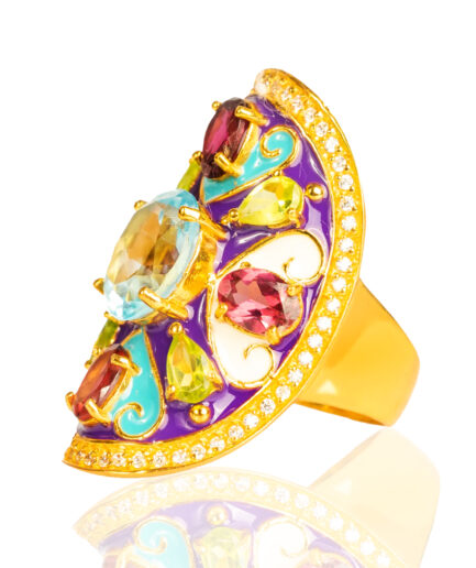 Sterling silver jewelry with 22k gold plated, natural stone and enamel.