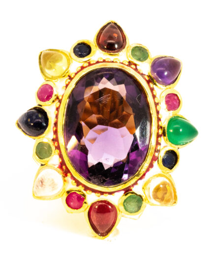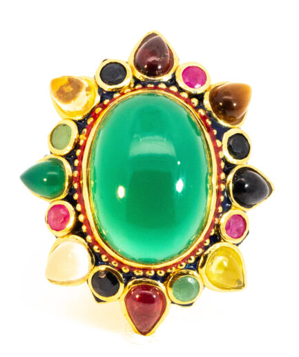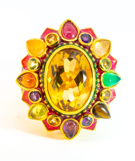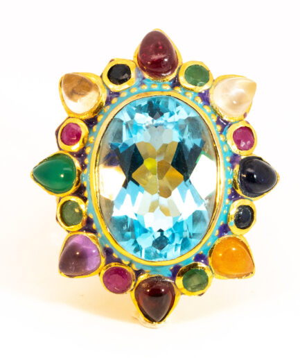 Sterling silver jewelry with 22k gold plated, natural stone and enamel.