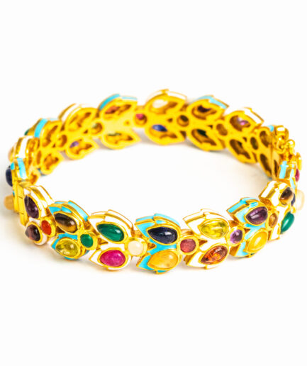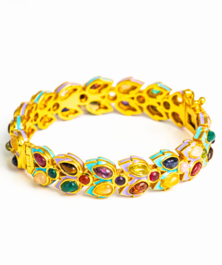 Sterling silver jewelry with 22k gold plated, natural stone and enamel.