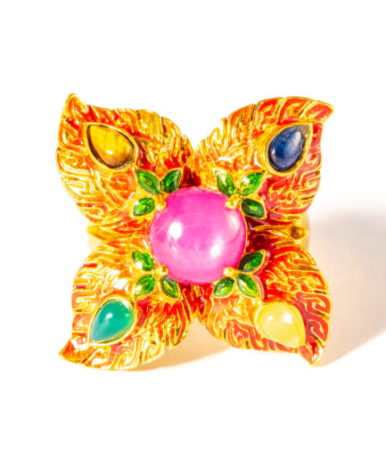 Sterling silver jewelry with 22k gold plated, natural stone and enamel.