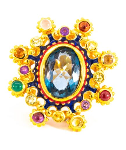 Sterling silver jewelry with 22k gold plated, natural stone and enamel.