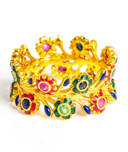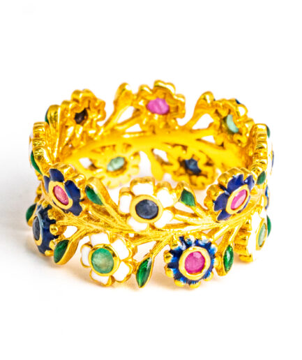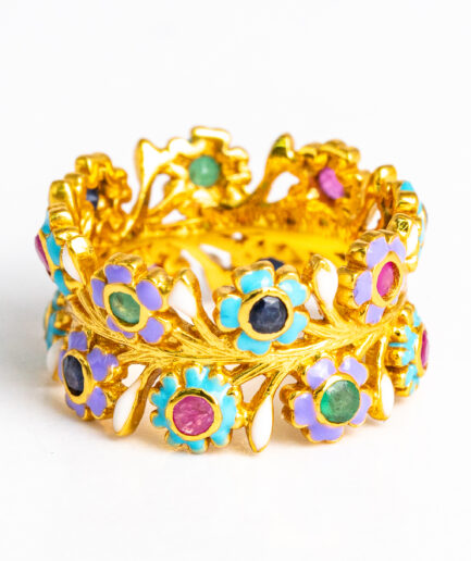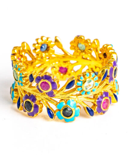 Sterling silver jewelry with 22k gold plated, natural stone and enamel.