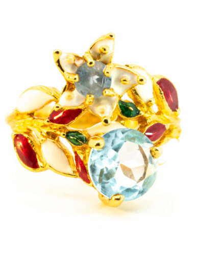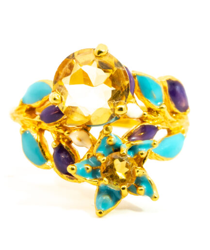 Sterling silver jewelry with 22k gold plated, natural stone and enamel.