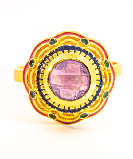 Sterling silver jewelry with 22k gold plated, natural stone and enamel.