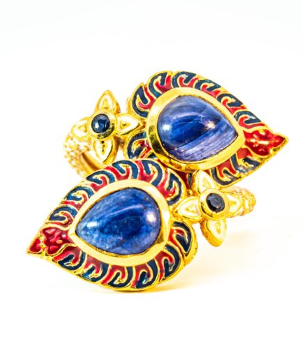 Sterling silver jewelry with 22k gold plated, natural stone and enamel.