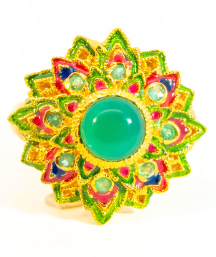 Sterling silver jewelry with 22k gold plated, natural stone and enamel.
