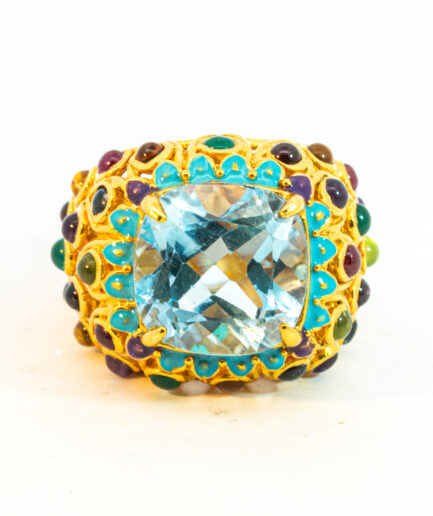 Sterling silver jewelry with 22k gold plated, natural stone and enamel.