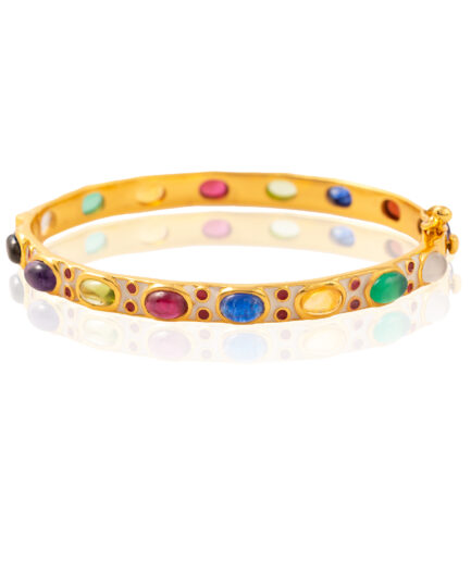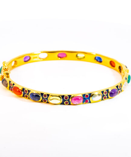 Sterling silver jewelry with 22k gold plated, natural stone and enamel.