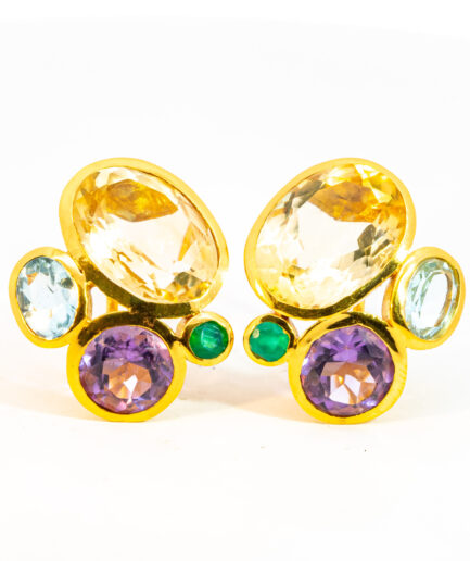 Sterling silver jewelry with 22k gold plated, natural stone and enamel.