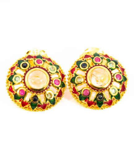 Sterling silver jewelry with 22k gold plated, natural stone and enamel.