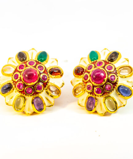 Sterling silver jewelry with 22k gold plated, natural stone and enamel.