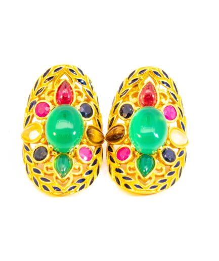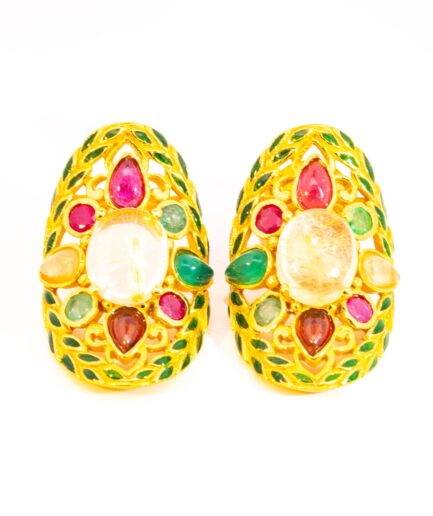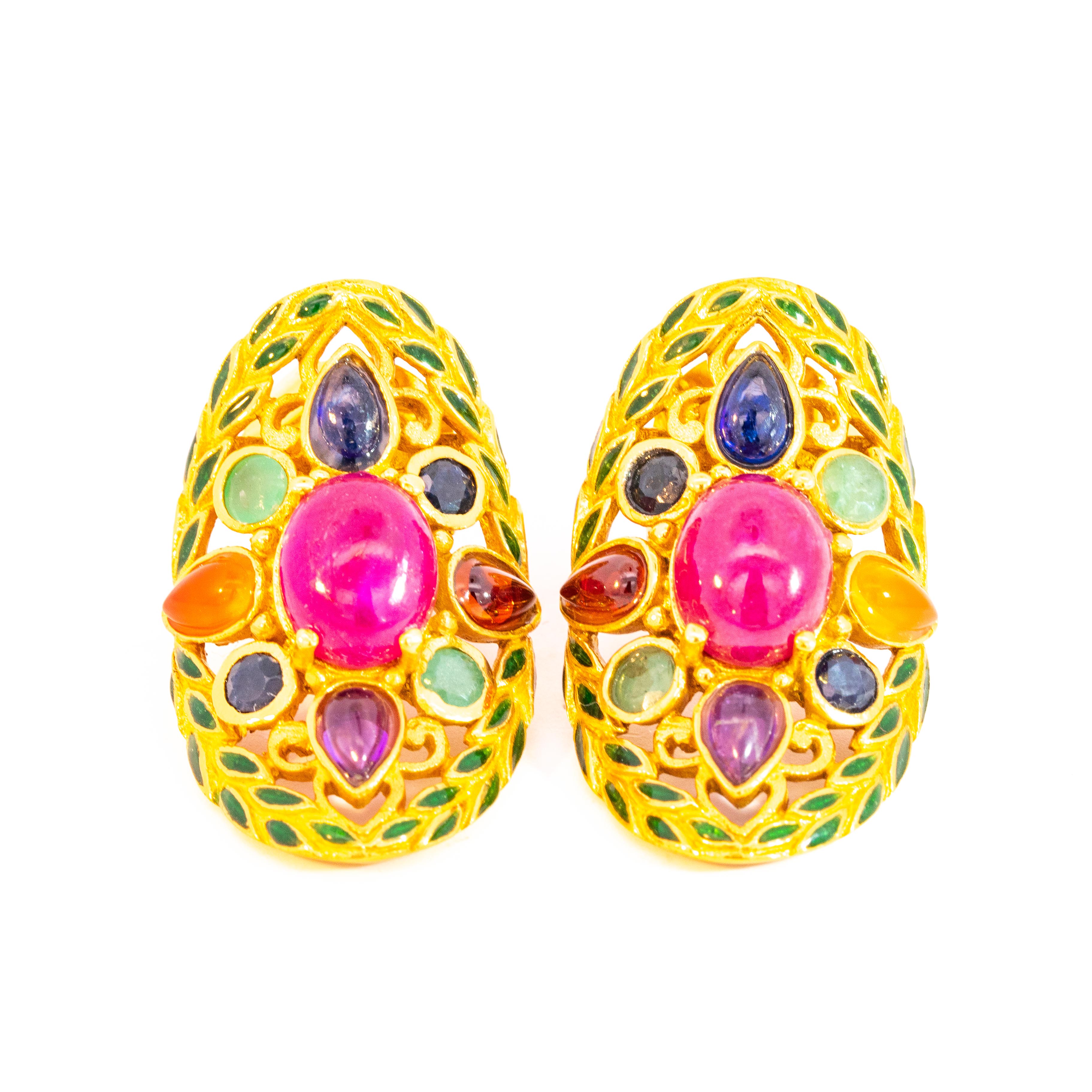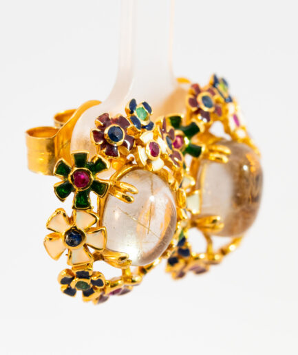 Sterling silver jewelry with 22k gold plated, natural stone and enamel.