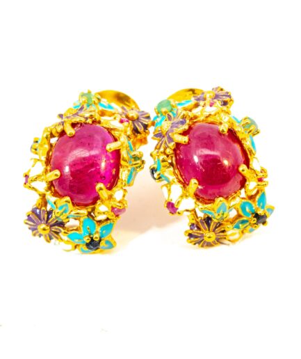 Sterling silver jewelry with 22k gold plated, natural stone and enamel.